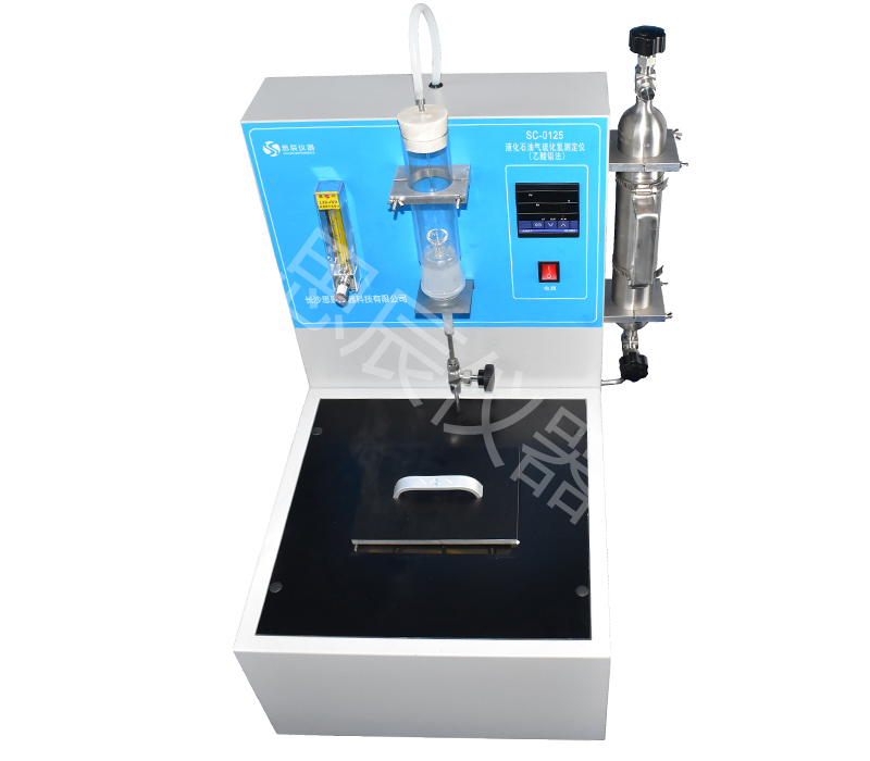 本儀器參照SH/T0125標準設計制造的。規定了氣化的液化石油氣在規定條件下通過濕潤的乙酸鉛試紙條,以試紙條是否變色來確定硫化氫有有或無,適用于液化石油氣中的硫化氫有或無的檢測,檢測硫化氫的下限為4mg/m3。如果甲基硫醇存在,則在乙酸鉛試條上產生短暫的黃色污斑,但不到5min便完全消失,液化石油氣中的其他硫化物不干擾本試驗。